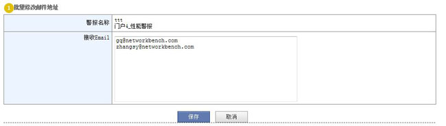接收Email:会显示所有选中警报内的Email,如果不同警报中的Email不相同,会合并在一起,以提供修改,保存后会将所选警报的Email用修改后的内容覆盖。