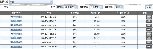 注:错误警报和性能警报日志列表略有不同,错误警报没有性能及可用性项而取带为错误数量。