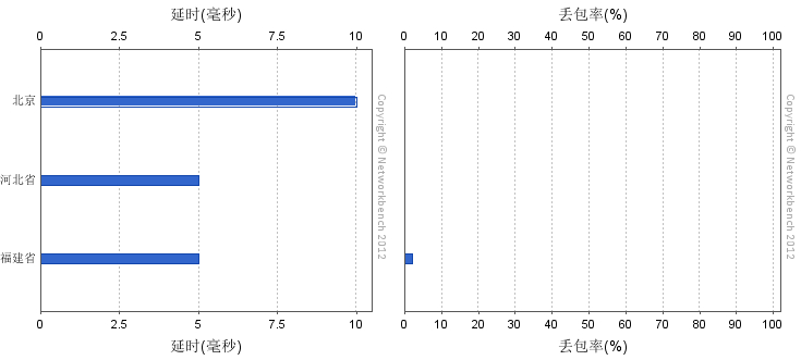 延时(毫秒):每一城市的平均Ping延时。